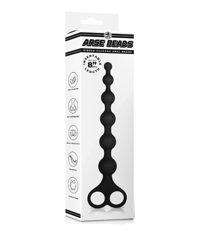 8″ Ribbed Silicone Anal Beads Black