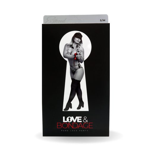 Magic Silk Love and Bondage collection, this style includes a panty featuring a strappy front and cheeky back coverage, a satin blindfold with ruffle trim and plush elastic strap and one 40 inch satin easy-tie bondage restraint.