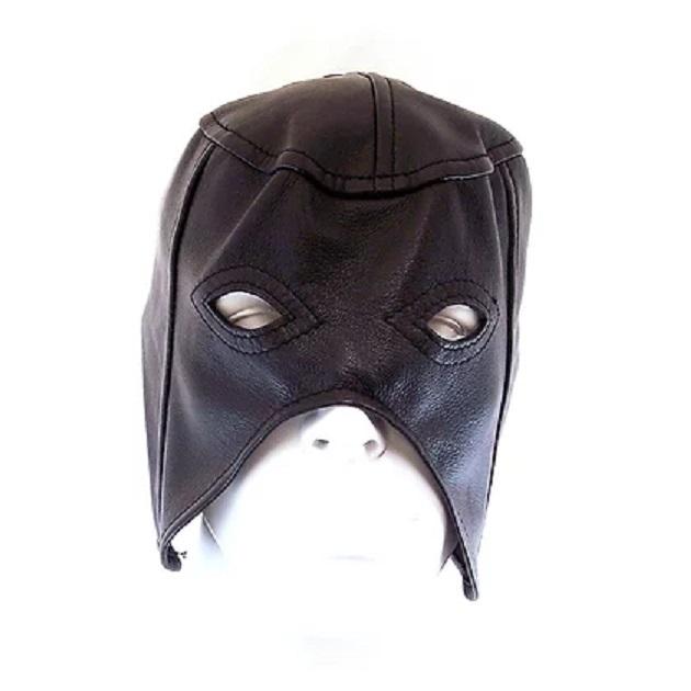 Half Mask black soft genuine leather half hood with thick lace tie and with two opening for eyes.