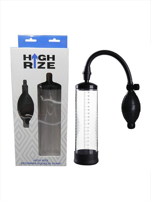 High Rize Beginner Squeeze Pump– Made from medical grade silicone and ABS plastic, this sturdy pump will always deliver excellent results. The High Rize Beginner Squeeze Pump has a negative pressure call so you can be total control and manually achieve your desired size. For quick and instant release, just press the release valve. Water-based lubricant recommended.