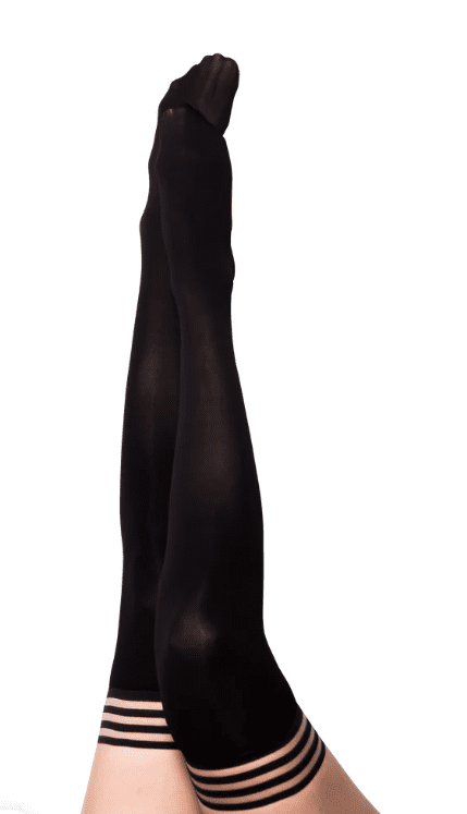 Kixies black opaque thigh-high tights are a day to night wardrobe essential, and a best-seller! This thicker thigh-high material helps keep your legs cosy, especially in the cooler seasons! Kixies thigh-highs are designed for all-day wear, with a no-slip-grip. We offer Petite to Plus Size Stockings and are the #1 thigh-highs that stay up!