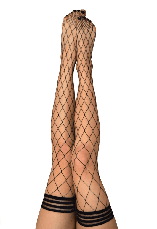 Here is a netting they will not soon be forgetting! The Michelle black large net fishnet thigh-high is perfect for layering under jeans or pairing with a little black dress for an evening out. These super trendy large fishnets by Kixies are the icing on the cake to all of your fall outfits and add a nice edge! Kixies thigh-highs are designed for all-day wear, with a no-slip-grip. We offer Petite to Plus Size Stockings and are the #1 thigh-highs that stay up!