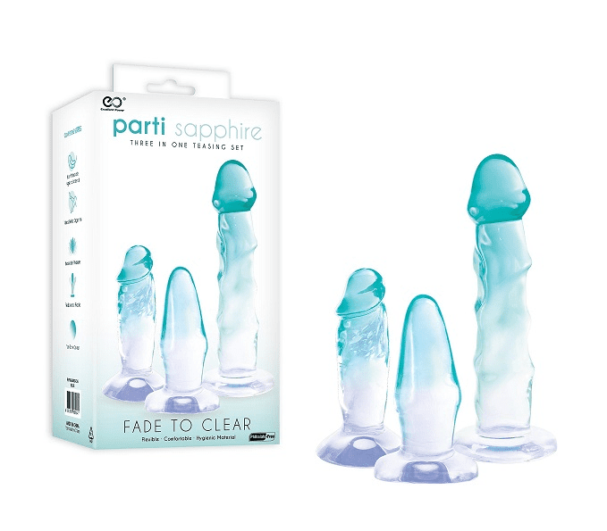 Parti Sapphires three in one teasing set offers three different shapes and sizes, all making better orgasms with their comfortable, flexible, and pliable material.