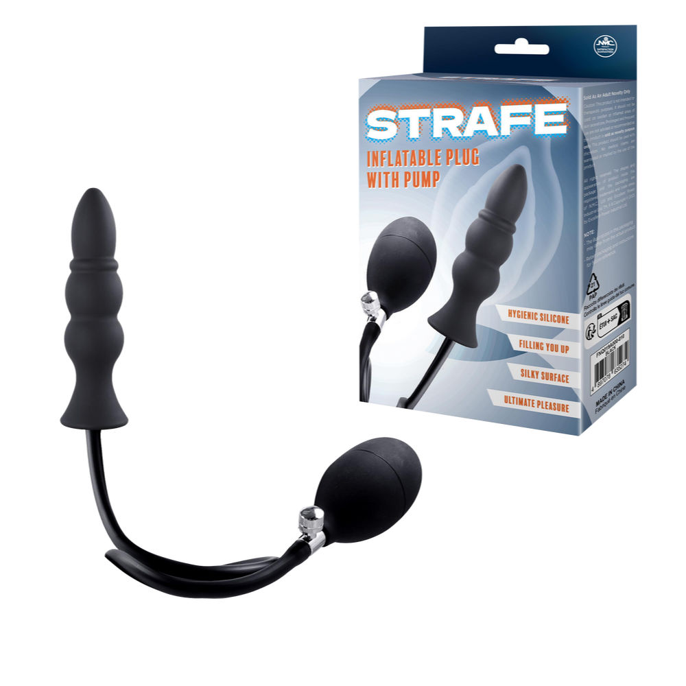 Inflatable Anal Probe with Bullet-tip, then a ridge, then two bulb shapes. Pump Bulb for inflation with screw valve.